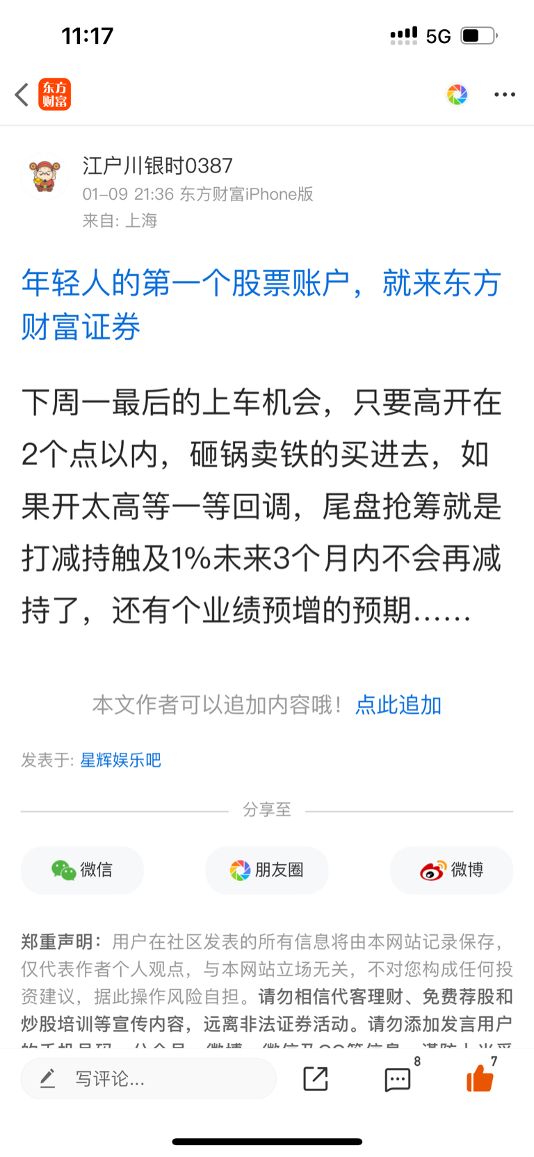 温馨提示: 1.根据《证券法》规定,禁止编造、传播虚假信息或者误导性信息,扰乱证券市场;2.用户在本社区发表的所有资料、言论等仅代表个人观点,与本网站立场无关,不对您构成任何投资建议。用户应基于自己的独立判断,自行决定证券投资并承担相应风险。《东方财富社区管理规定》