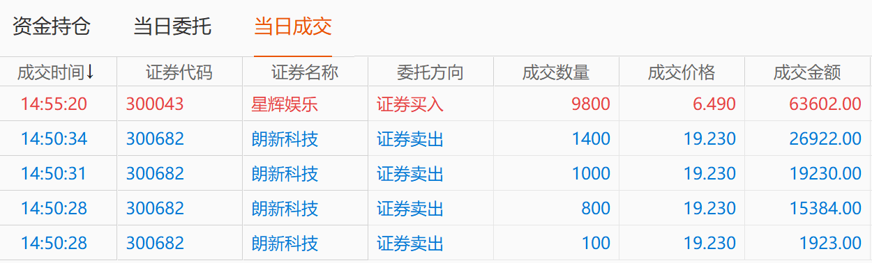 小号5万玩炒股之,尾盘卖出朗科科技,重新买回星辉娱乐!