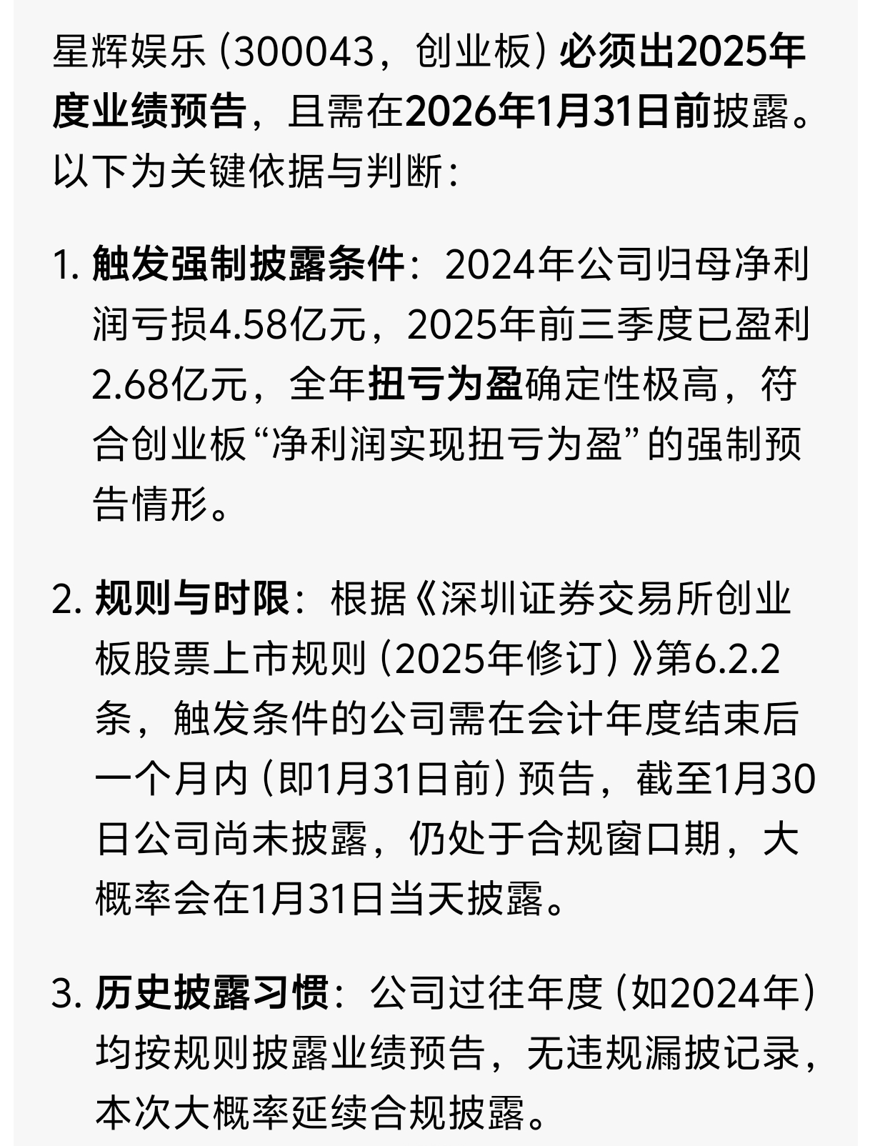 今天晚上不出,明天都必须出预告,不然就信披违法
