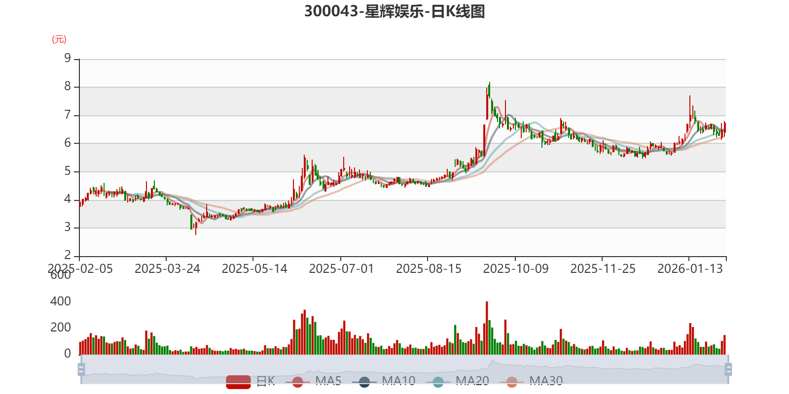 中证智能财讯星辉娱乐(300043)1月30日晚间披露2025年度业绩预告,预计2025年归母净利润2.7亿元至3.51亿元,上年同期亏损4.58亿元;扣非净利润预计2.17亿元至2.82亿元,上年同期亏损4.65亿元。以1月30日收盘价计算,星辉娱乐目前市盈率(TTM)约为23.82倍-30.97倍,市净率(LF)约4.87倍,市销率(TTM)约4.07倍。
