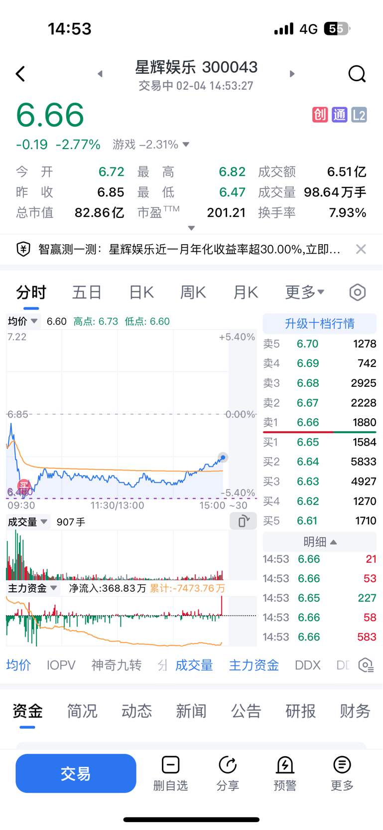 $星辉娱乐(SZ300043)$ 砸锅卖铁,早上补仓了