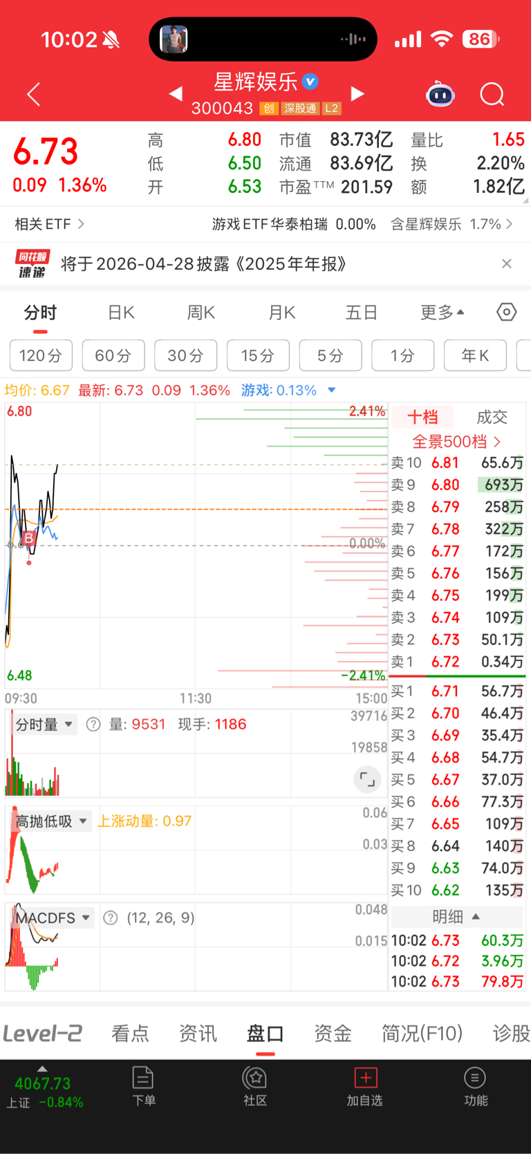 $星辉娱乐(SZ300043)$ 昨天半夜挂单6.5,最后撤回了。好可惜,不然今天成本更低。希望今天能做t成功吧