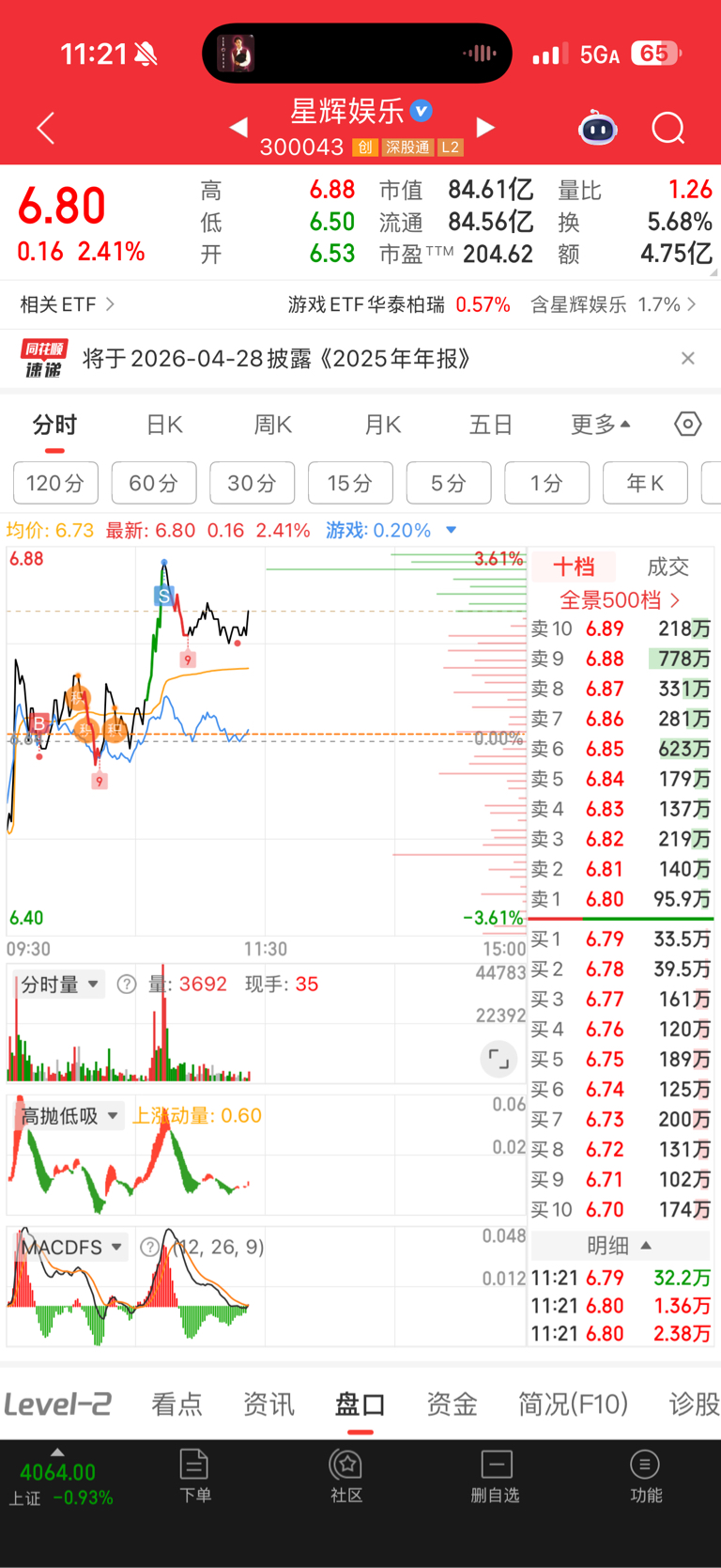 $星辉娱乐(SZ300043)$ 继续低吸,下午睡醒,一定有惊喜。