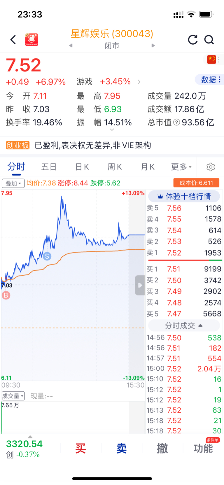 $星辉娱乐(SZ300043)$ 以为T飞了 下午又回来了