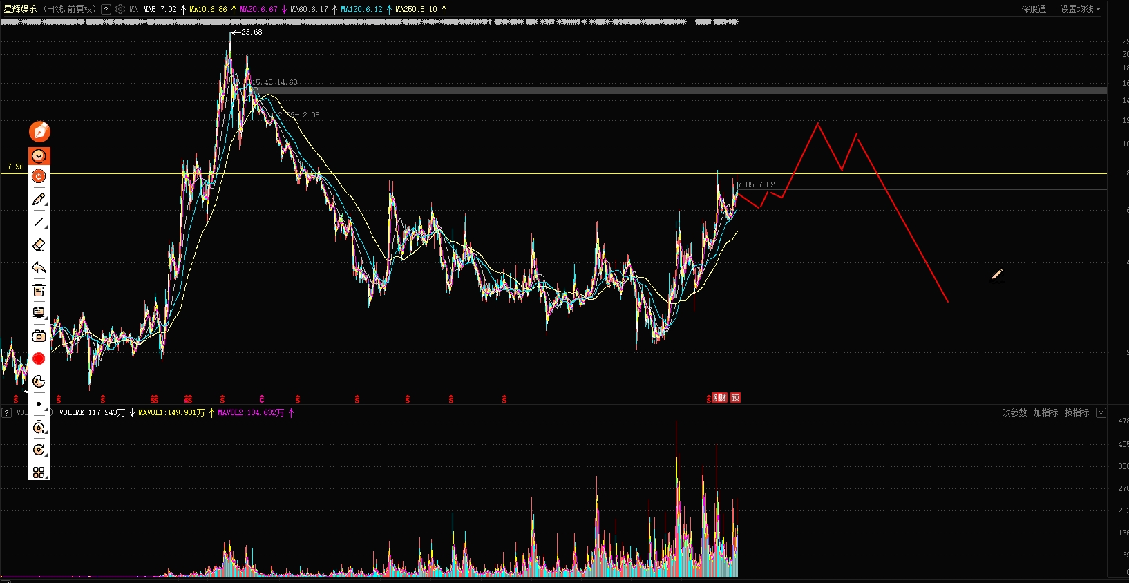 $星辉娱乐(SZ300043)$ 调整已经开始估计3个个月左右