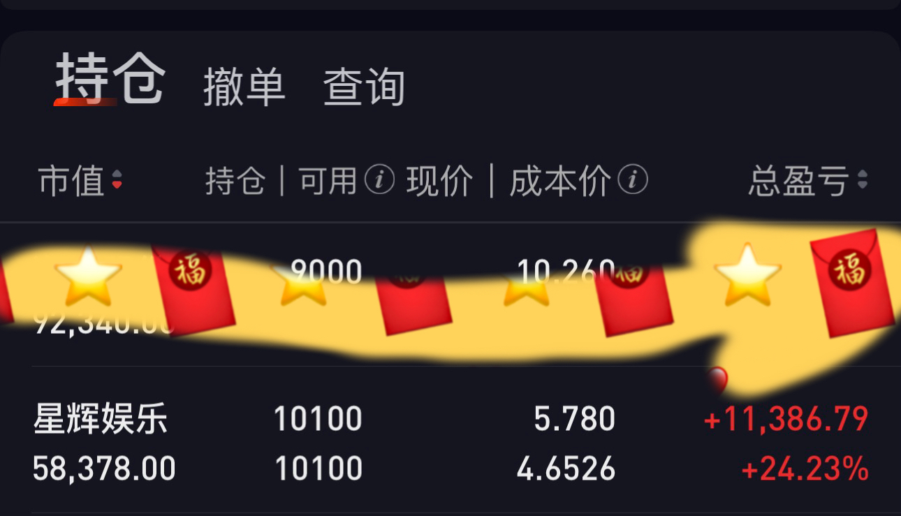 $星辉娱乐(SZ300043)$ 底仓8000 股拿两年了,还以为周线走主升浪,手欠加了点,然后拉个大的。没比存银行好哪去,这股没多大出息。