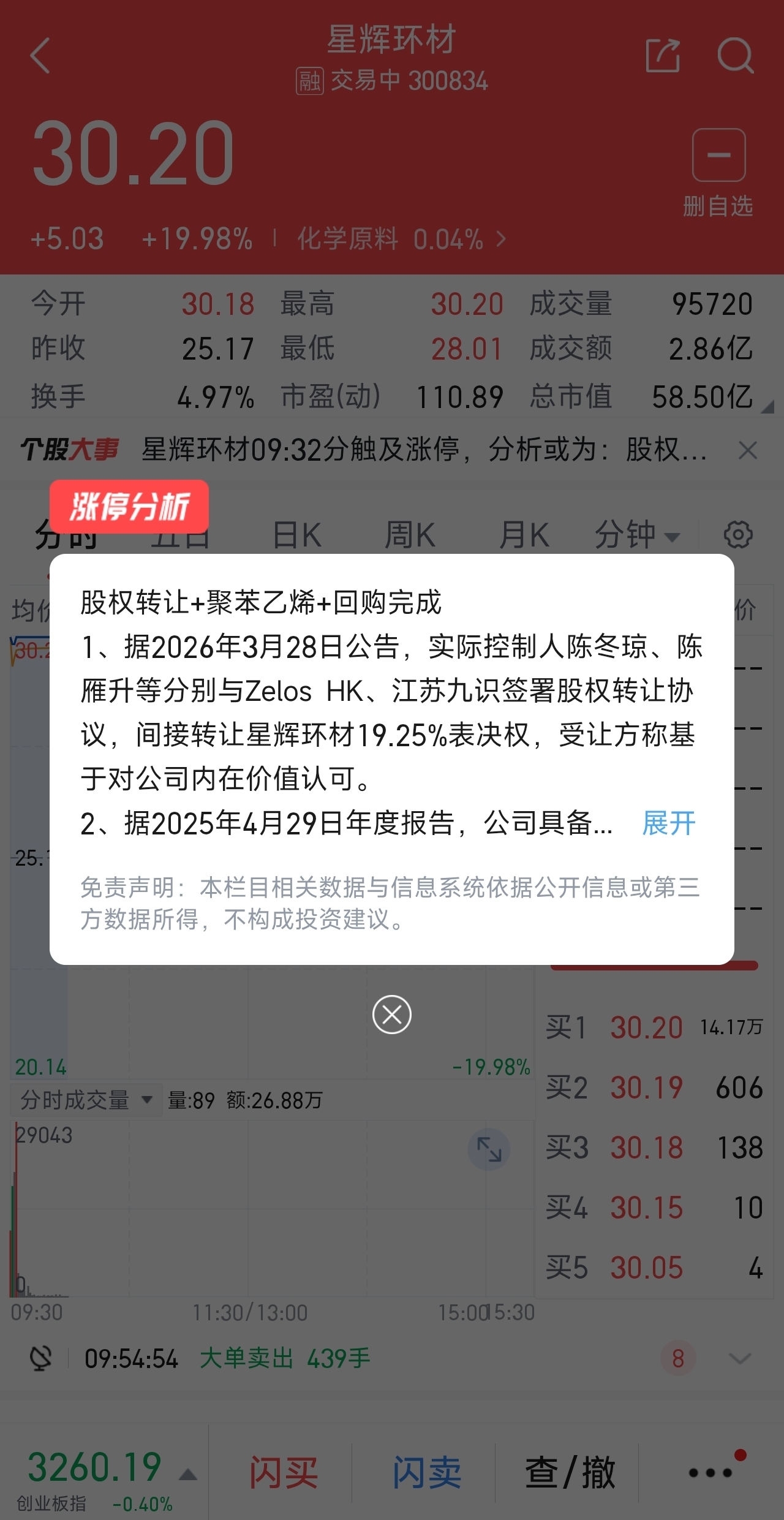 你儿星辉环材20%涨停