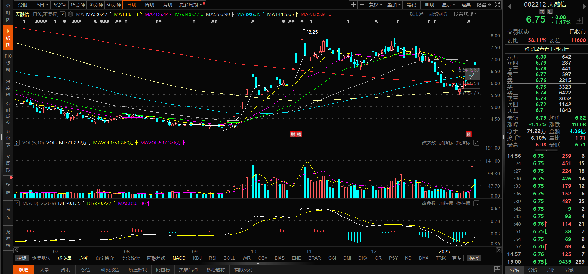 天融信:今天走势弱于预期,不过考虑到今天成交量明显萎缩,所以就线格局,看看明天有没有反包的可能。基本面来看,该谷是软件开发板块的,公司是本土领先的网络安全、大数据与云服务提供商。在1月15日时,公司发布了业绩预报,2024年预计扭亏,净利润同比增长117.50%至124.23%。而且,公司旗下又量子科技的业务,而英伟达和微软最近都在宣布“量子科技”的相关项目,题材相当不错,如果后续反包,那么可以就是继续格局的理由。