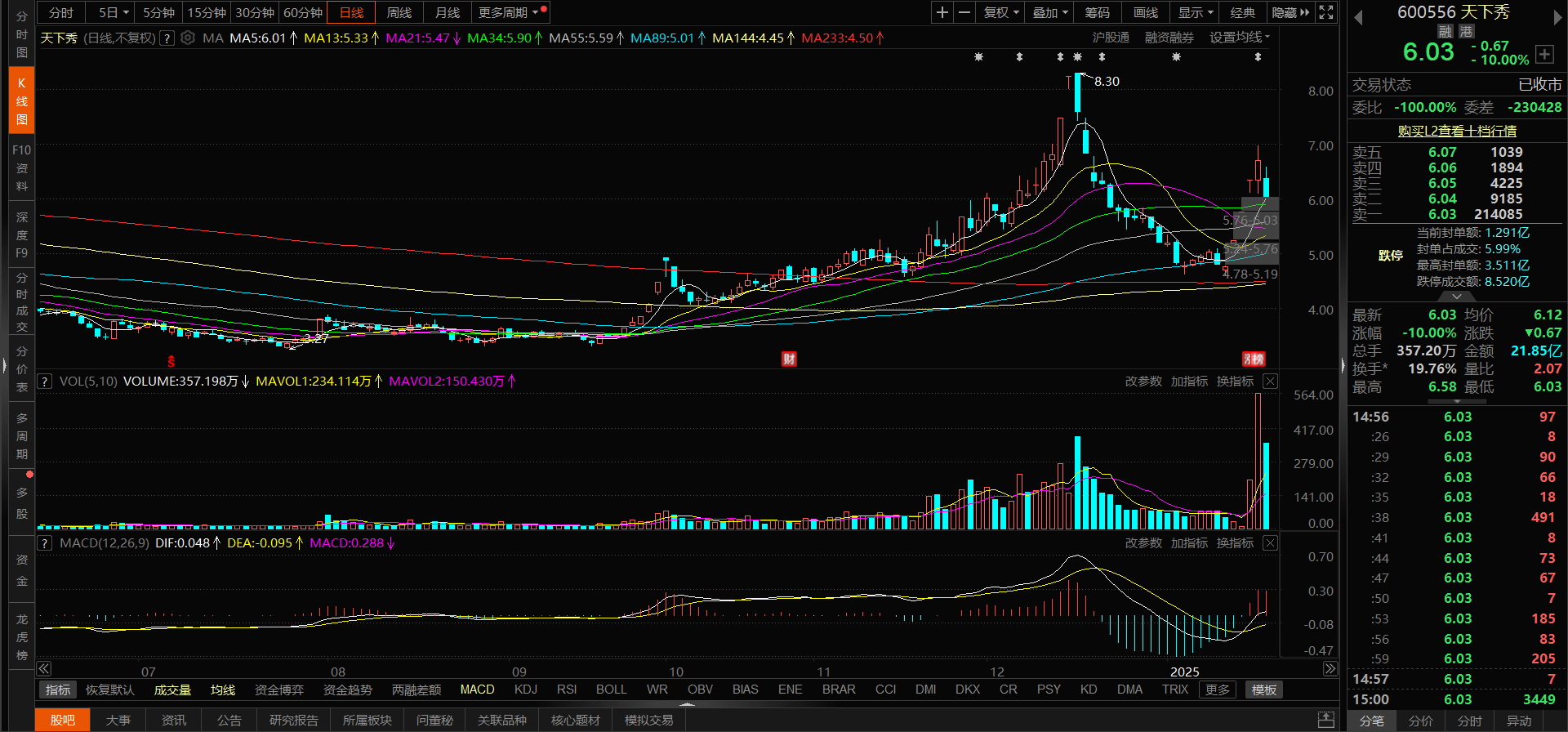 天下秀:今天开盘之后直奔跌停而去,即使想出来也出不来,因此只要躺平到收盘了。国际版抖音的回归,对于小红书是个利空,因此今天会走出这种形态。从基本面来看,公司配合小红书等平台,积极开拓KFS内容营销组合策略,将网红(内容创作者)的影响力、信息流广告和搜索广告结合在一起,以优质内容为核心精准放大策略,全面覆盖客户需求并提高营销效果。明天先看吧,再做处理。