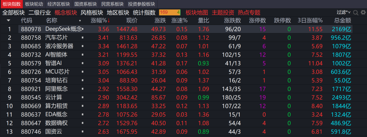 昨天DEEPSEEK概念继续大涨,大模型题材已延伸至智谱 AI 和短剧游戏领域,传媒板块也因《哪咤 2》以及大模型训练所需大量数据(包括文字、语音等)而上涨。此外,昨天猪肉板块走势强劲,考虑到猪肉板块调整周期通常较长,昨天的上涨是否意味着行情触底反转,还需继续观察研究后续走势。