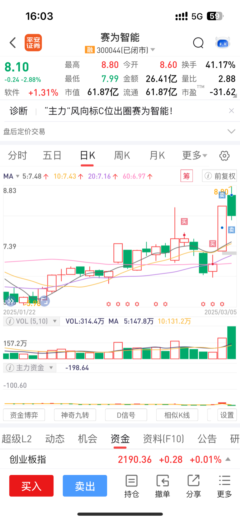 昨天太可惜,开盘挂飞了一些,直接涨停。今天开盘拉高不行就清了。不然二十多个点