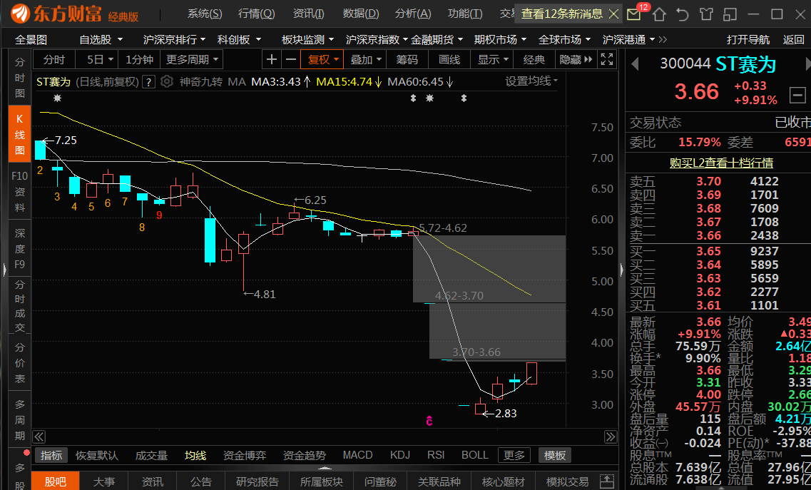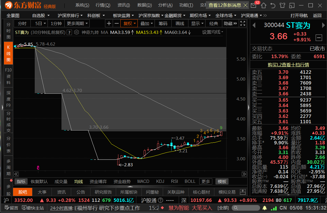 因明天本人要在工作中有事不能盯盘,就提前再把个人对赛为明天的看法表达一下:1*今天的分时线上来看,收盘价的3.66对分时均线的3.49明显产生了将近5个点的乖离,这是个隐患,暂时就要把明天早盘开盘冲高后可能回踩一下今天分时均线价格在脑海中留一个痕迹,说此观点就是有个盘中T的事