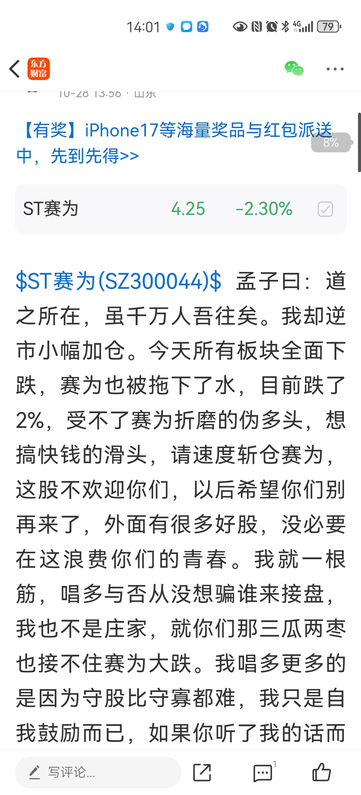 $ST赛为(SZ300044)$ @梦的眼神 ,所有板块都在跌?你是瞎吗?都这样了还在唱多,不怕报应吗?