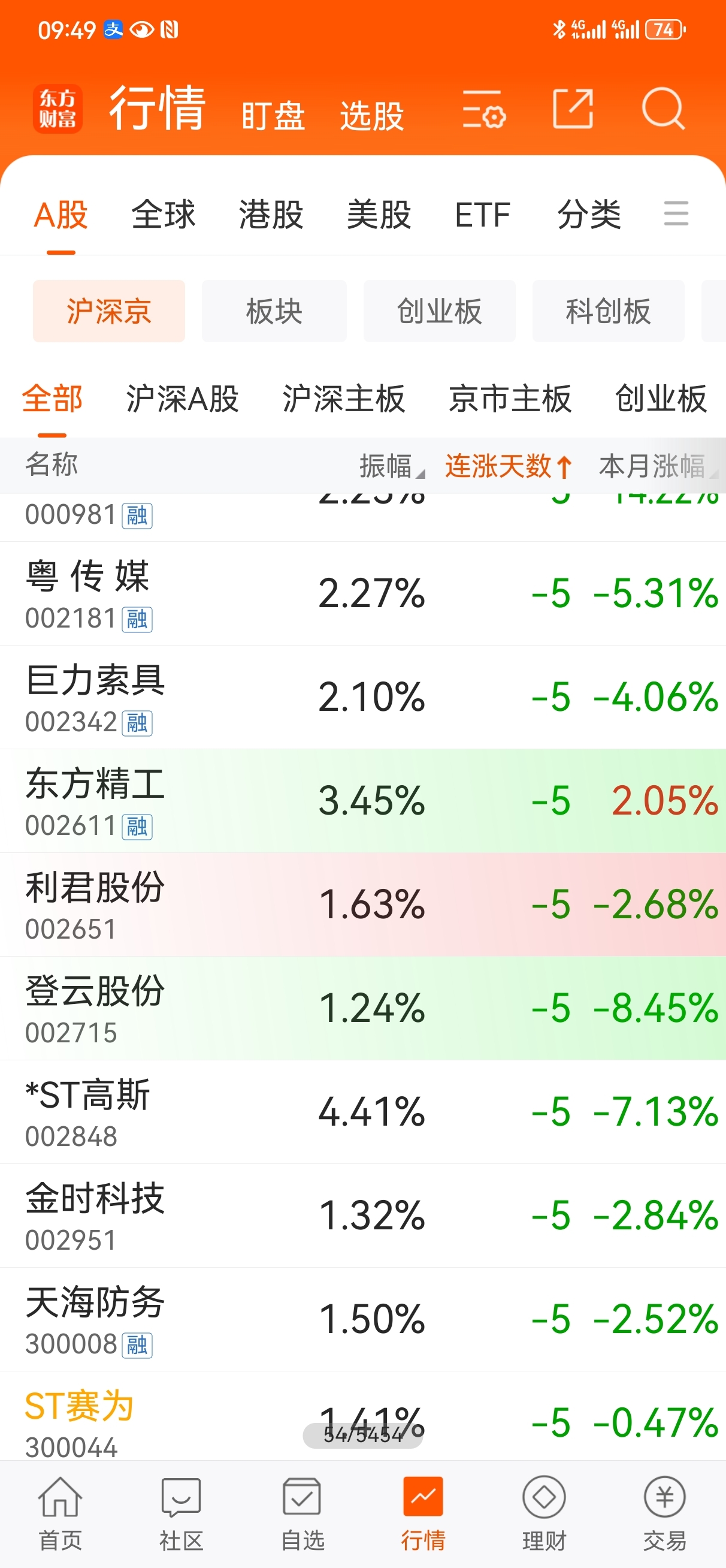 赛便智胀再次以连跌五天成绩超过A股5454只股的5400股。无论连跌天数,每天下