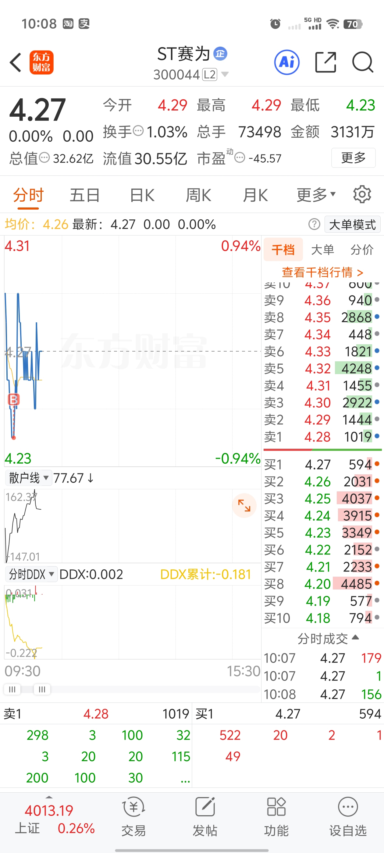 $ST赛为(SZ300044)$ 以我设想月底出进展,上一波4.57高点回调到4.17接着拉到4.66,后面又接着下来,我觉得大概率不会破4.2,回调到位上升突破前高走主升,但愿如此
