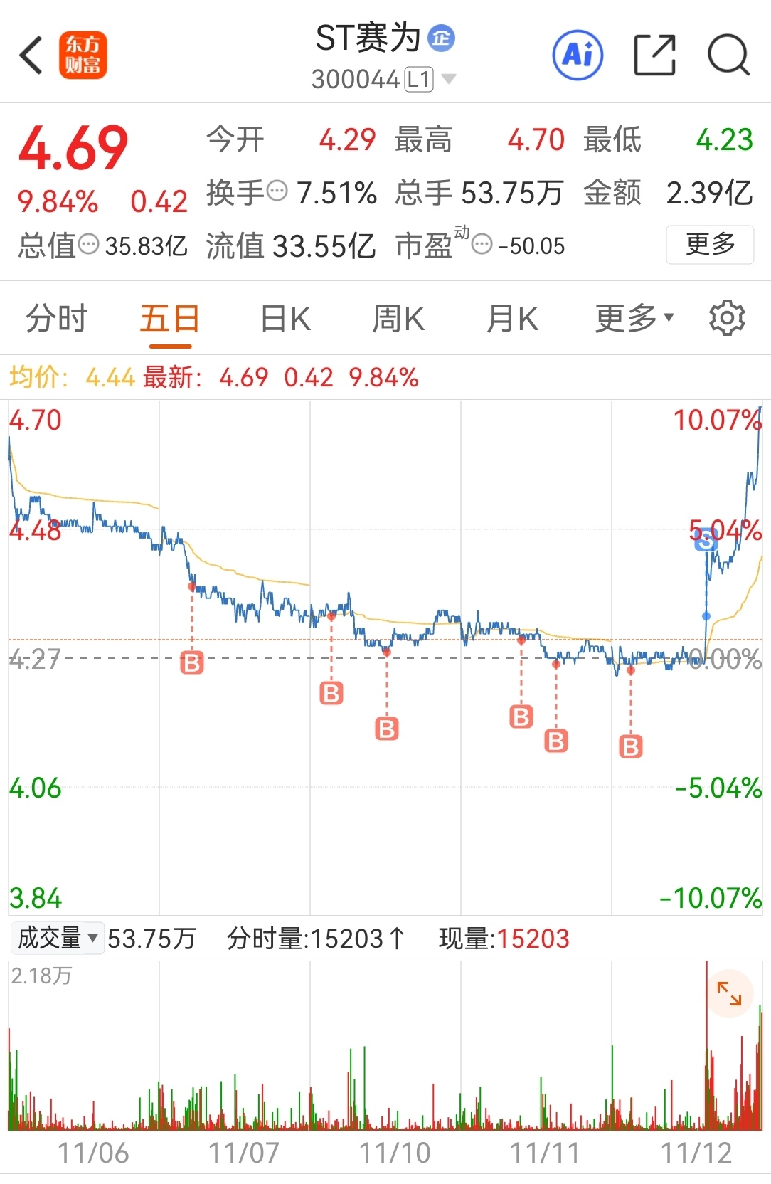 $ST赛为(SZ300044)$ 一阳灭四阴。明天应该还有得看