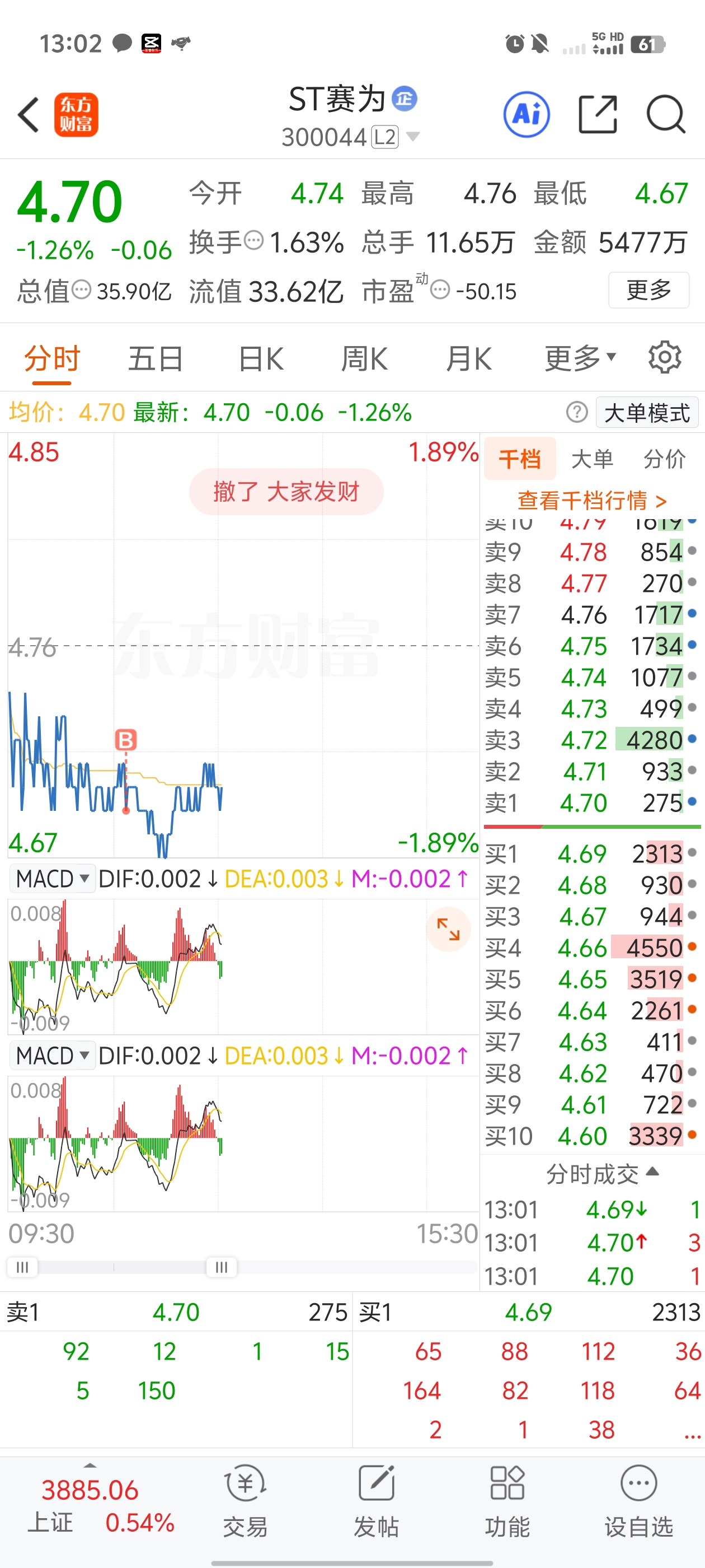 $ST赛为(SZ300044)$ 老铁们,我又回来了