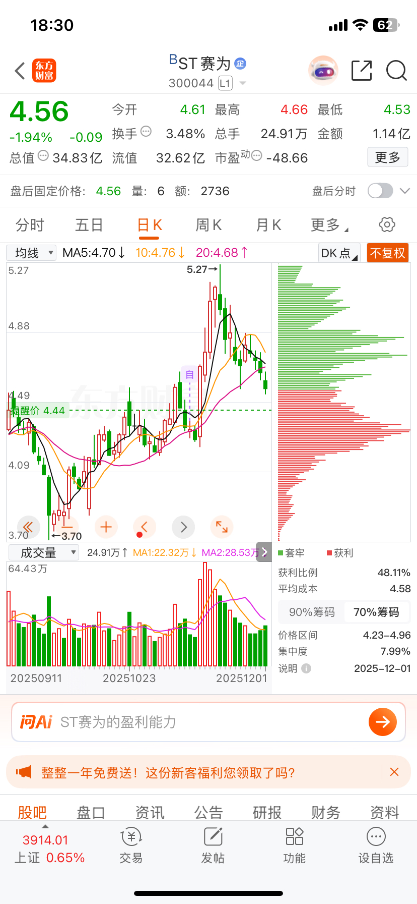 如果唱衰的人你真的在赛为亏损,那说明你水平太差了,选的下一个标的未必有赛为好。如果你是为了更好的高低切换,那么你这人人品太次!