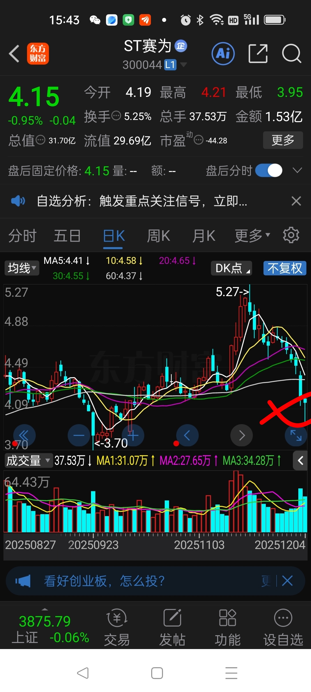 $ST赛为(SZ300044)$ 这个大长腿不知该如何?