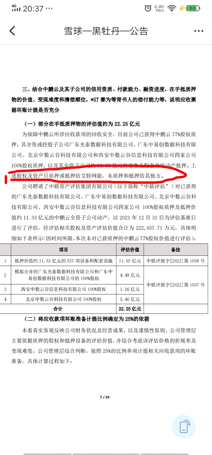 $ST赛为(SZ300044)$ 中鹏云及其子公司抵质押物2021年底黑牡丹聘请中联评估公司评估值约为22.25亿,不知道现在够不够赛为欠的合同款?