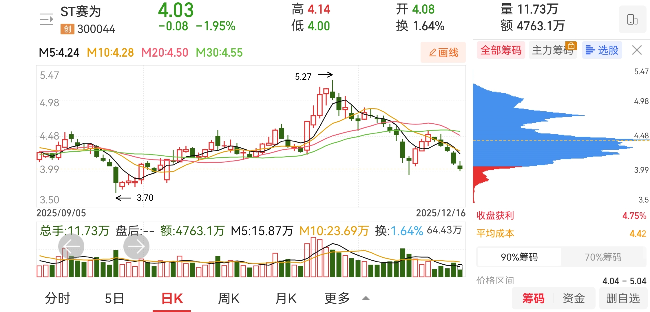$ST赛为(SZ300044)$ 看赛为的筹码分布,获利盘几乎都没了,主力肯定也跑了,散户套牢,那么到底是谁在砸盘呢