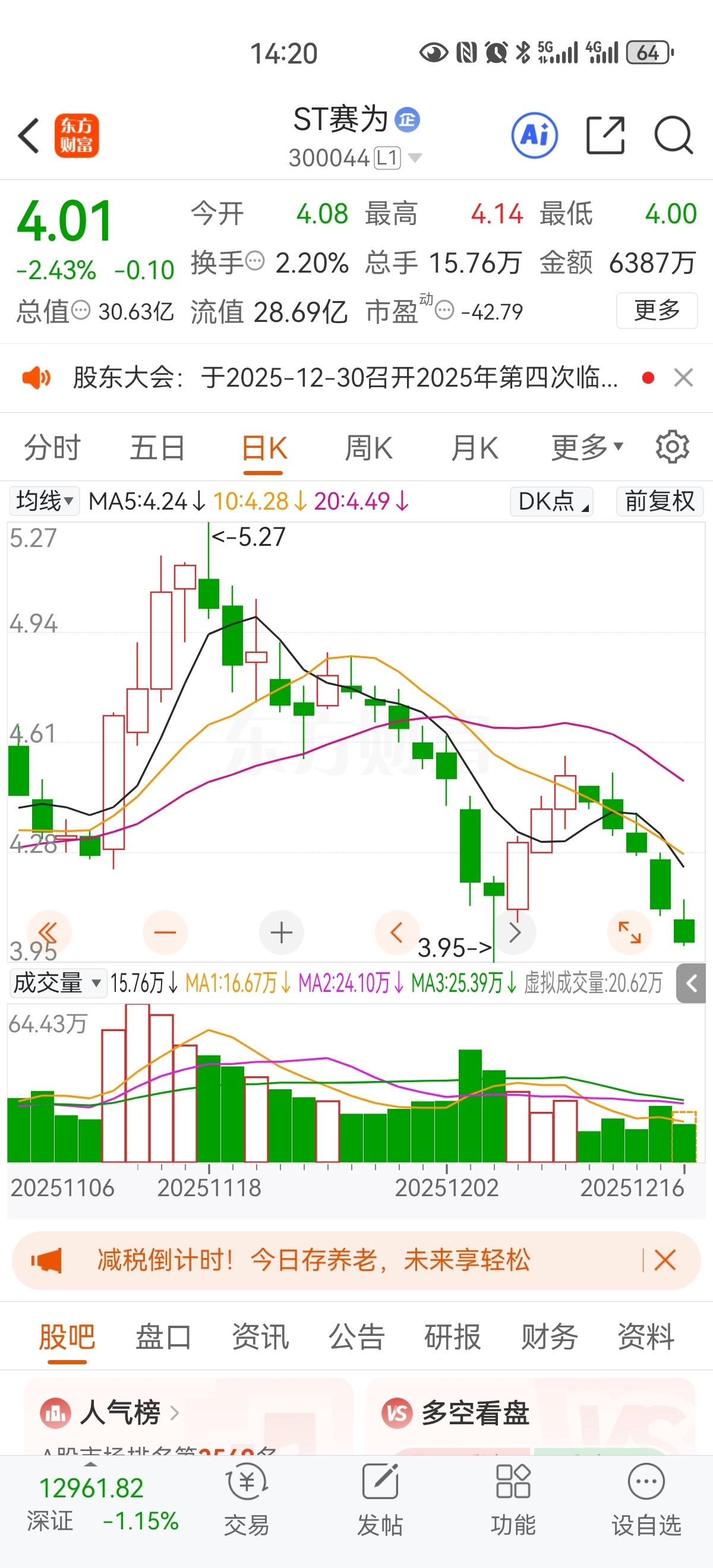 $ST赛为(SZ300044)$ 你们炒股炒了一辈子也见不到这么能跌的股吧?这还没退市呢,就已经跌成这样了。