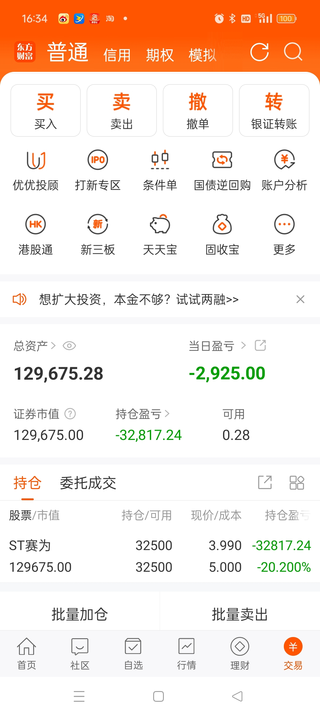 $ST赛为(SZ300044)$ 就是不卖也不加仓补仓,