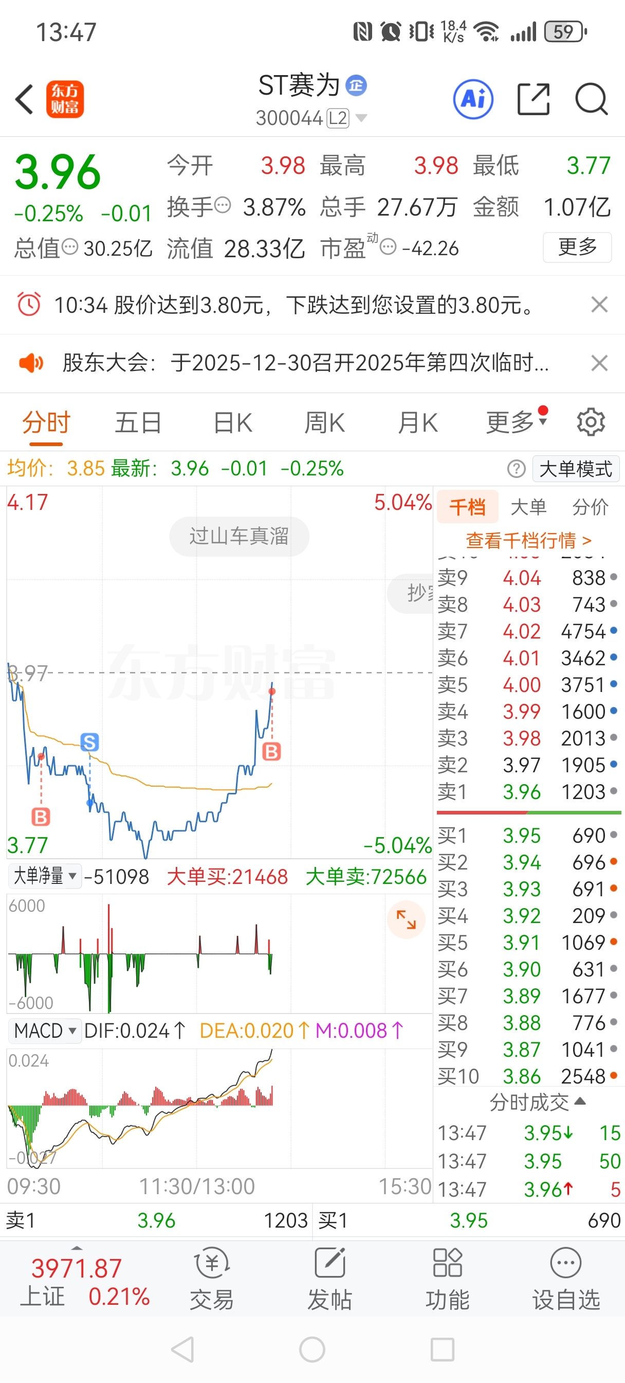 $ST赛为(SZ300044)$ 卖了就涨,又回来了,不知道对还是错