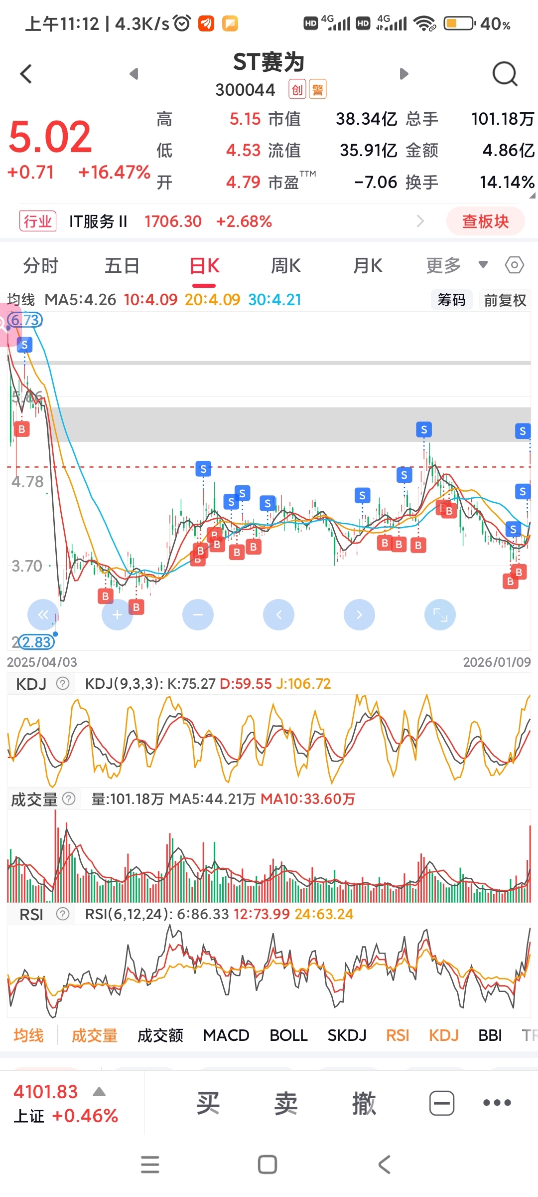 $ST赛为(SZ300044)$ 不容易,亏了60%,不断高抛低吸,一年时间,终于在5.13处盈利5%清了
