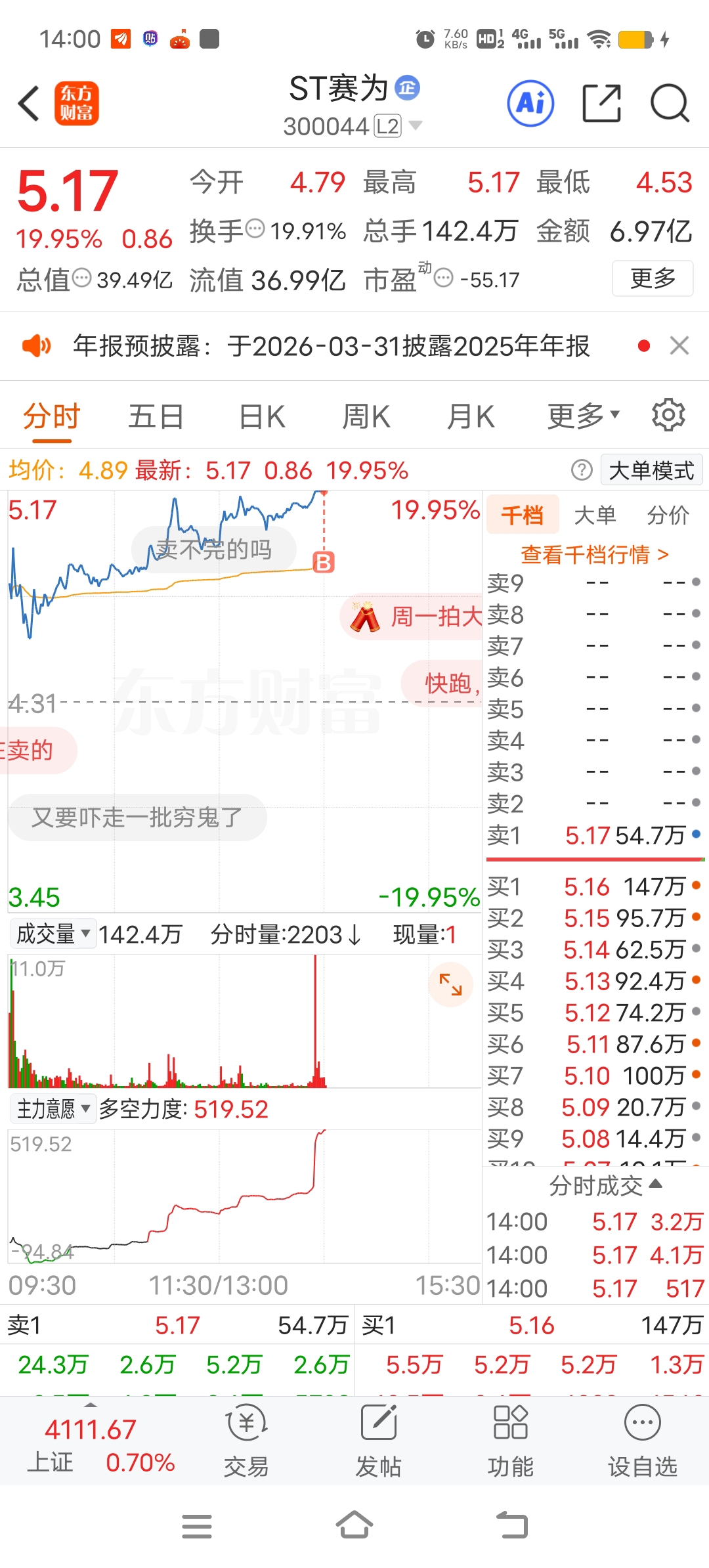 $ST赛为(SZ300044)$ 我承认是我封的板