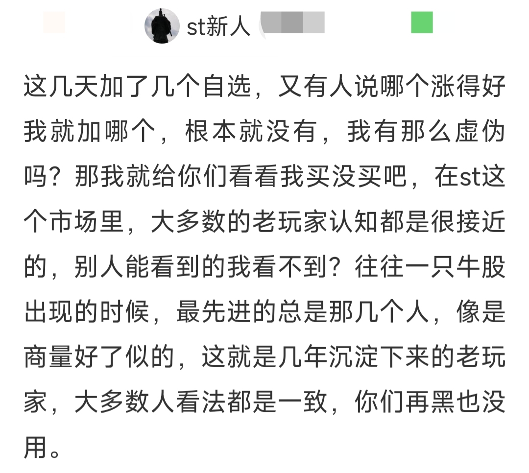 2026年1月12日(辞忆十四年一月十二日),ST新人发帖加仓了和,并反驳了批评