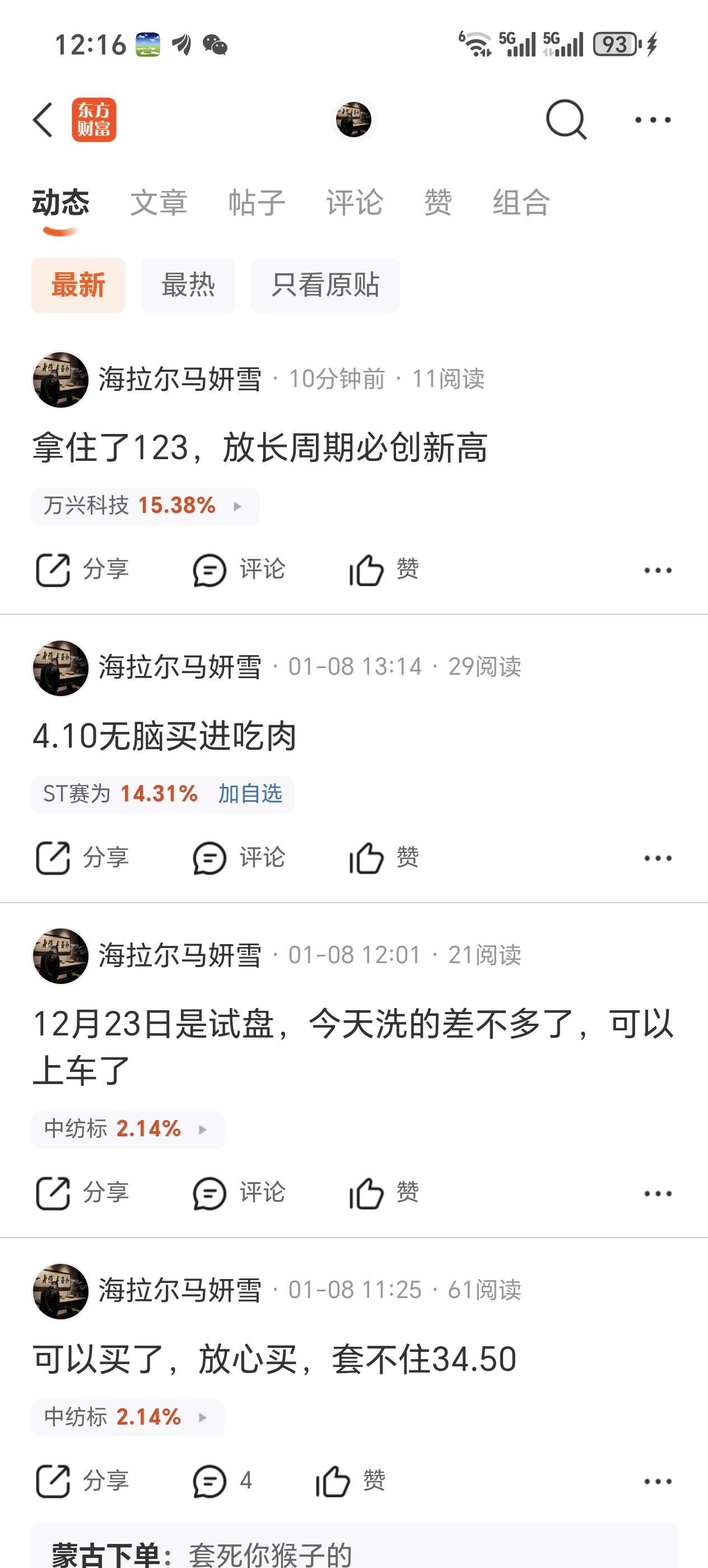 温馨提示: 1.根据《证券法》规定,禁止编造、传播虚假信息或者误导性信息,扰乱证券市场;2.用户在本社区发表的所有资料、言论等仅代表个人观点,与本网站立场无关,不对您构成任何投资建议。用户应基于自己的独立判断,自行决定证券投资并承担相应风险。《东方财富社区管理规定》