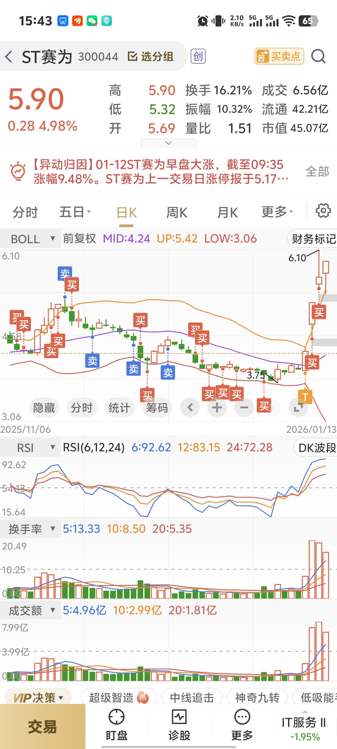 $ST赛为(SZ300044)$ 都明牌了,就不要做T了,没有意义。趋势向下做T是为了降成本,趋势向上,做T难道是为了做高成本?买定离手,等揭迷底就行了