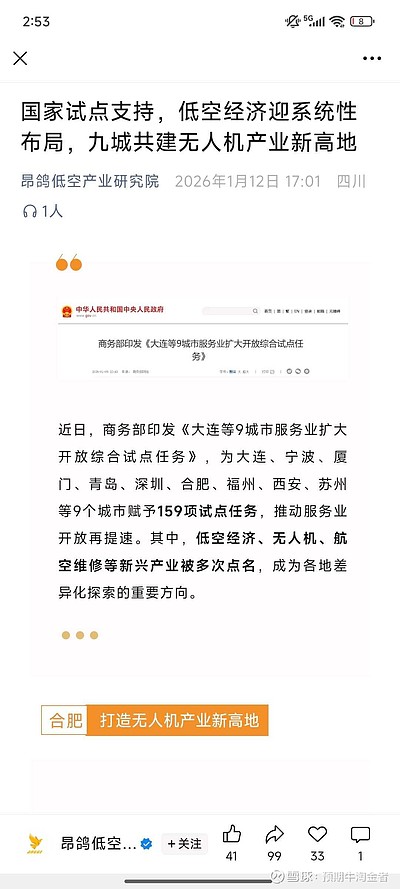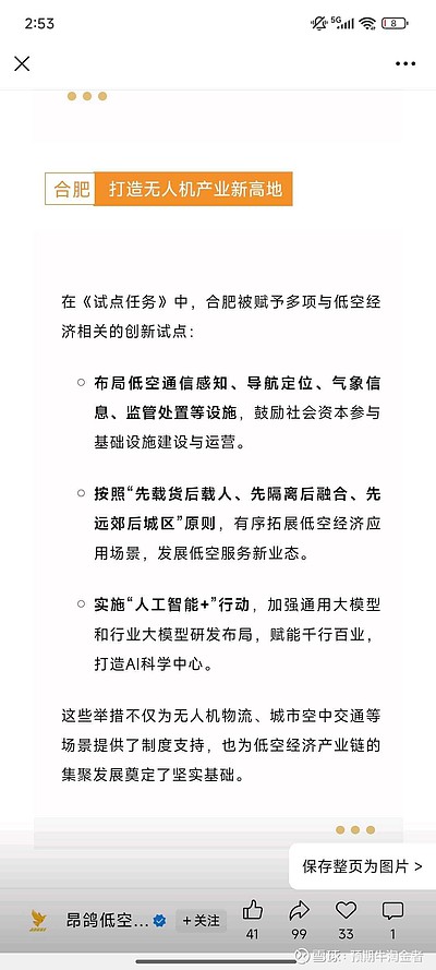 $ST赛为(SZ300044)$第二个猜测,除了深圳,安徽尤其是合肥,和赛为智能联系紧密,知根知底,安徽合肥有很多的独角兽,有没有可能从这里面出一个?合肥也是无人机产业和低空经济的九大试点城市之一。