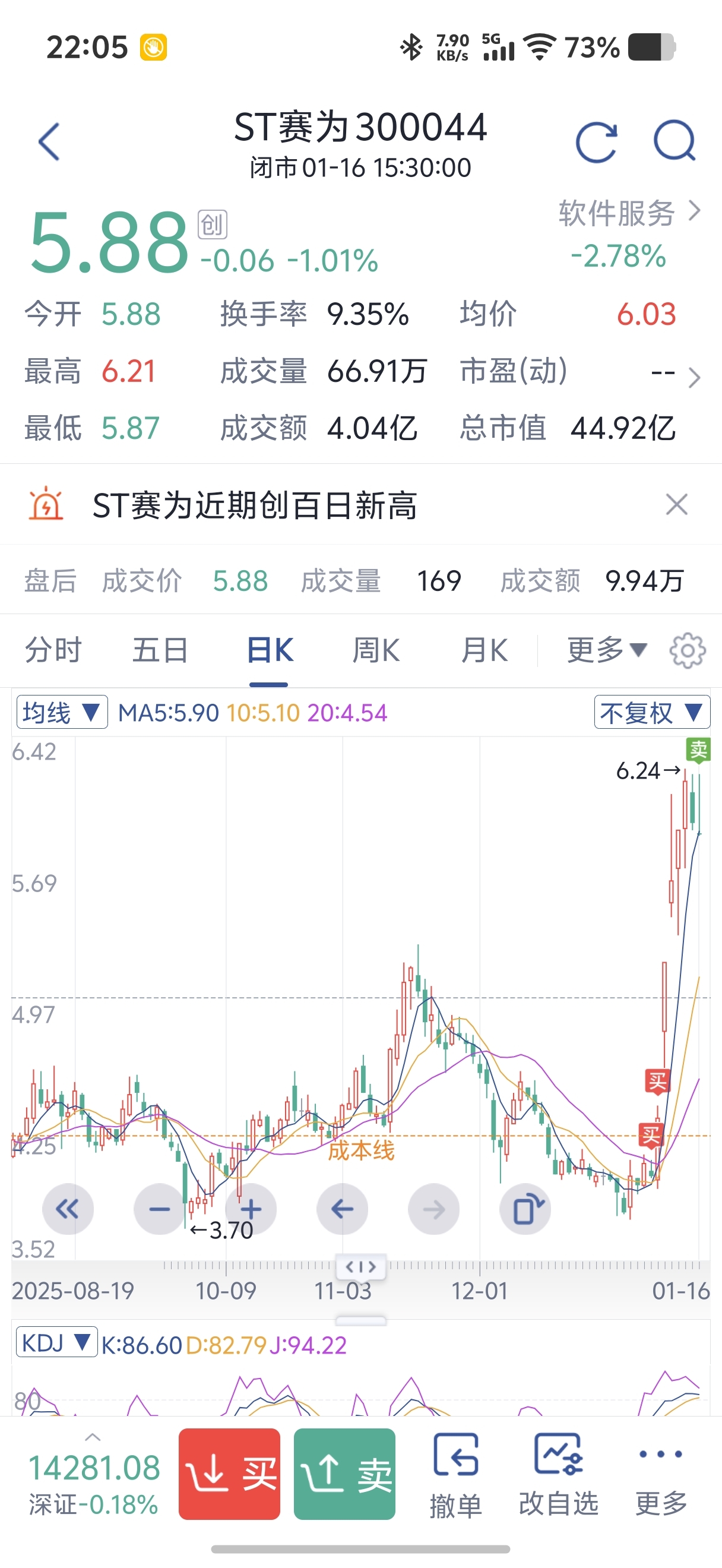 $ST赛为(SZ300044)$ 留下的发财,我卖错也要卖,锁定收益先
