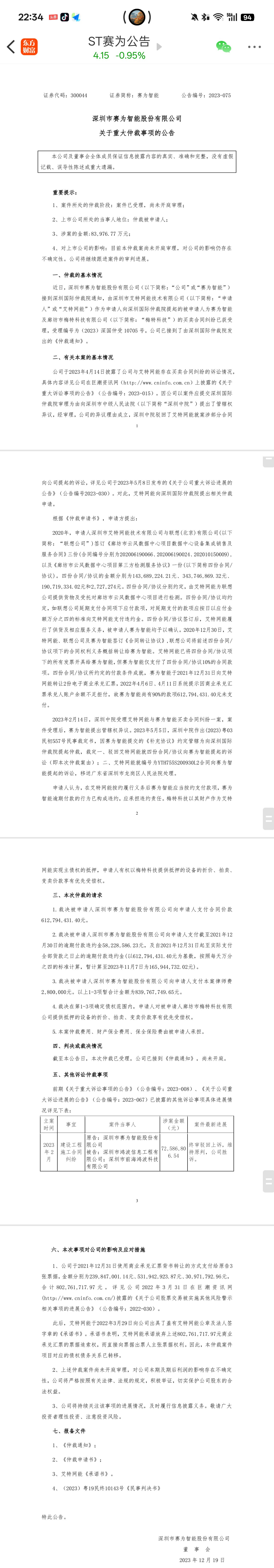 2023年4月艾特网能1.91亿起诉法院,6.13亿起诉仲裁要钱