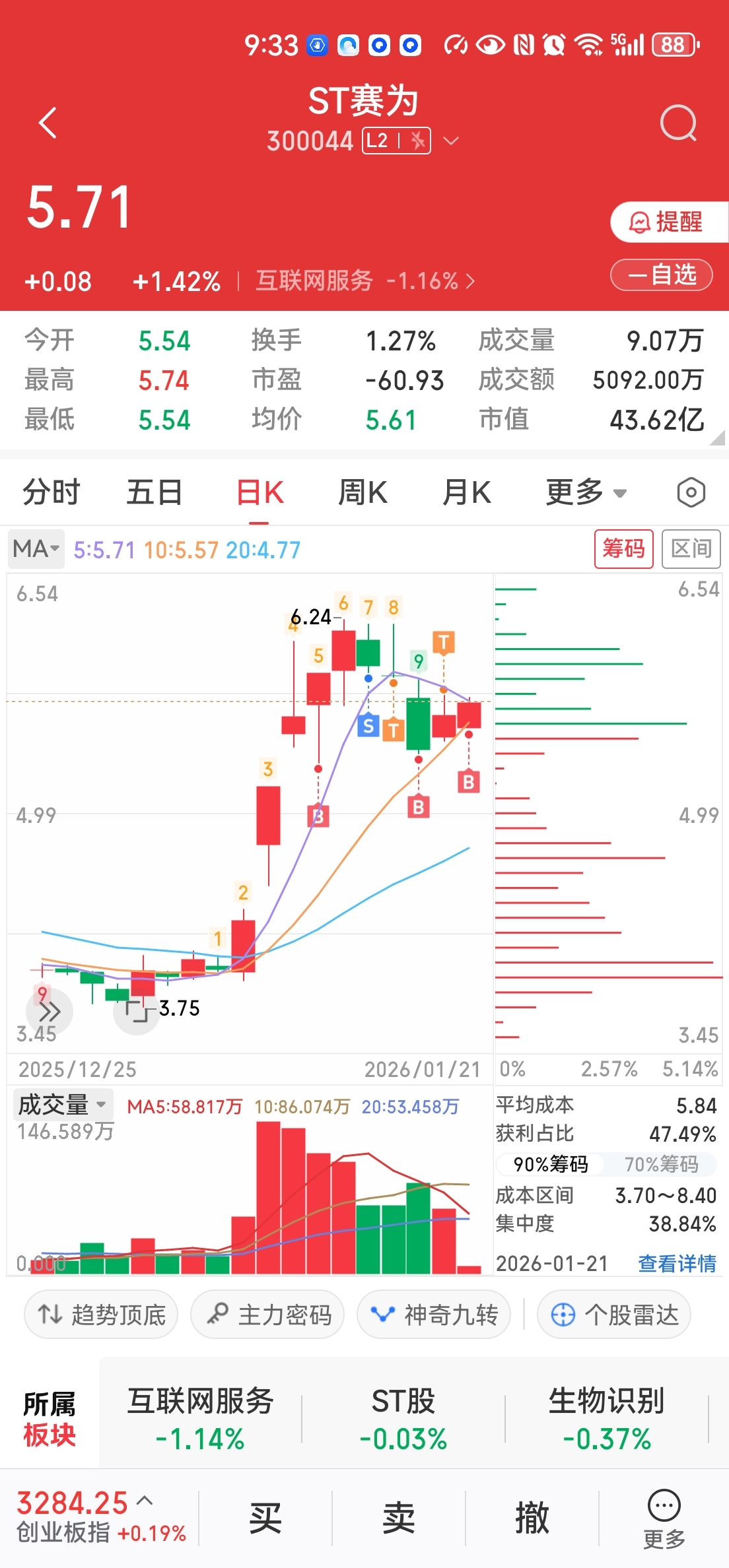 $ST赛为(SZ300044)$ 开盘就加仓,哈哈,加油,看底牌