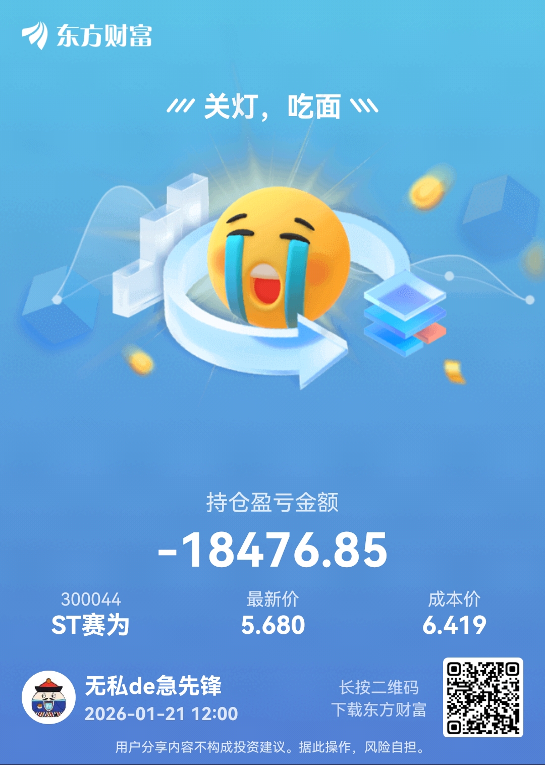 $ST赛为(SZ300044)$ 唱空的让我丢了筹码