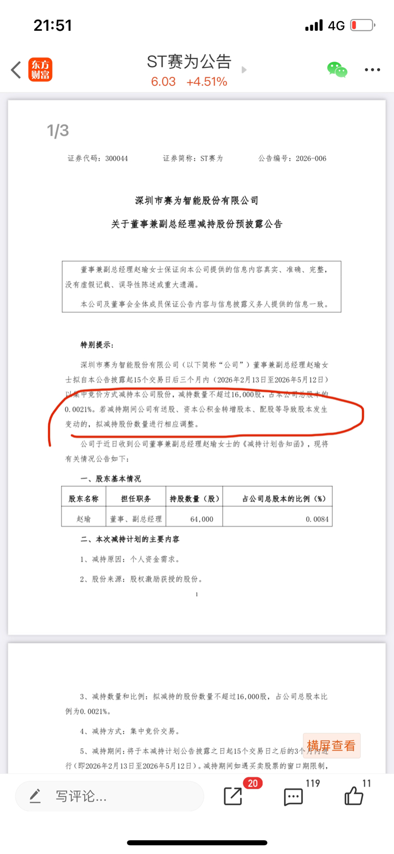 $ST赛为(SZ300044)$ 减持是重点吗,重点是给你们提个醒,