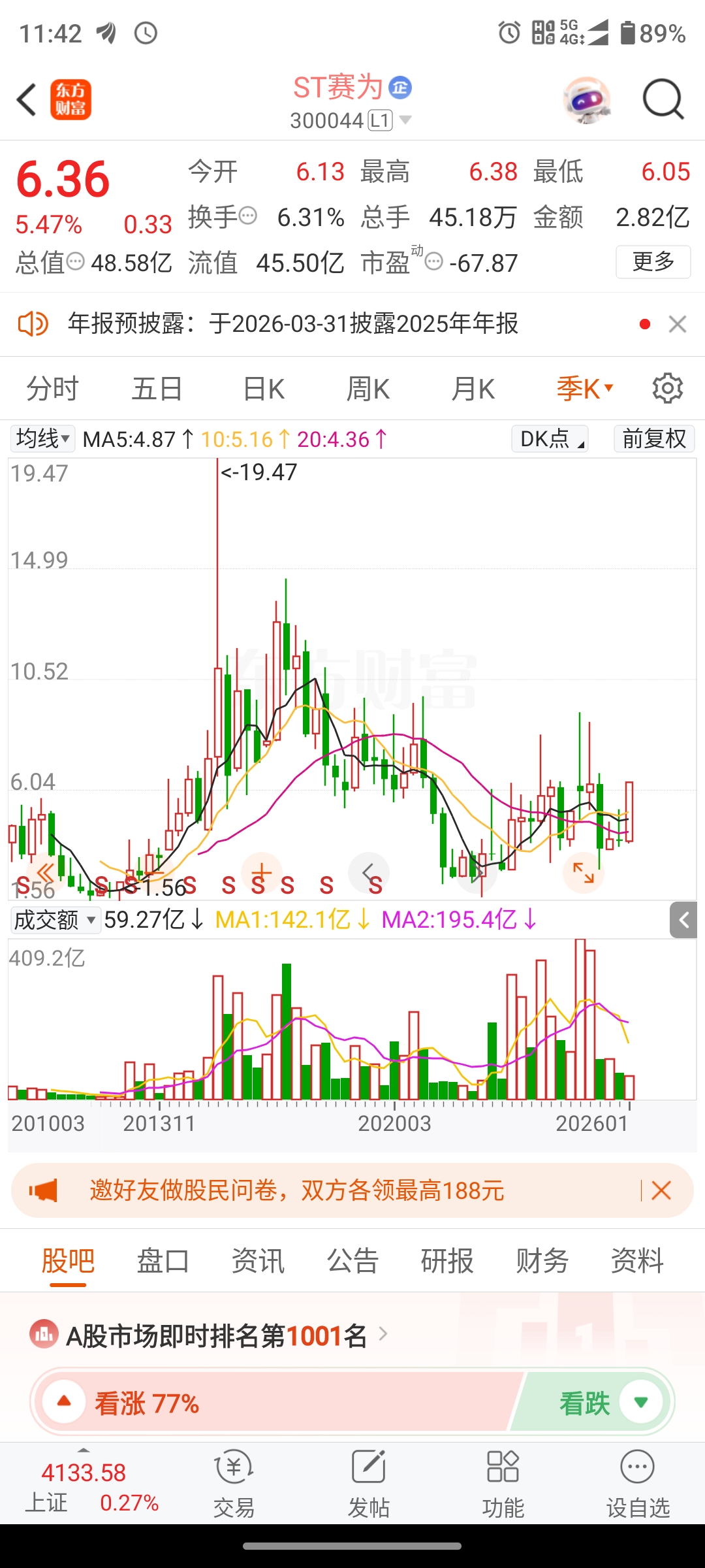 $ST赛为(SZ300044)$ 解放19高地所有战友,就在2026年,可能不?