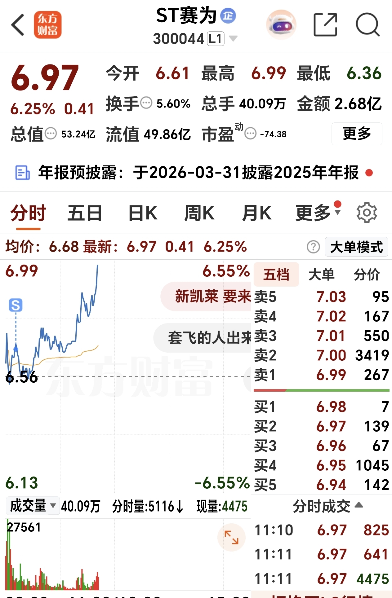 $ST赛为(SZ300044)$ 卖早了点