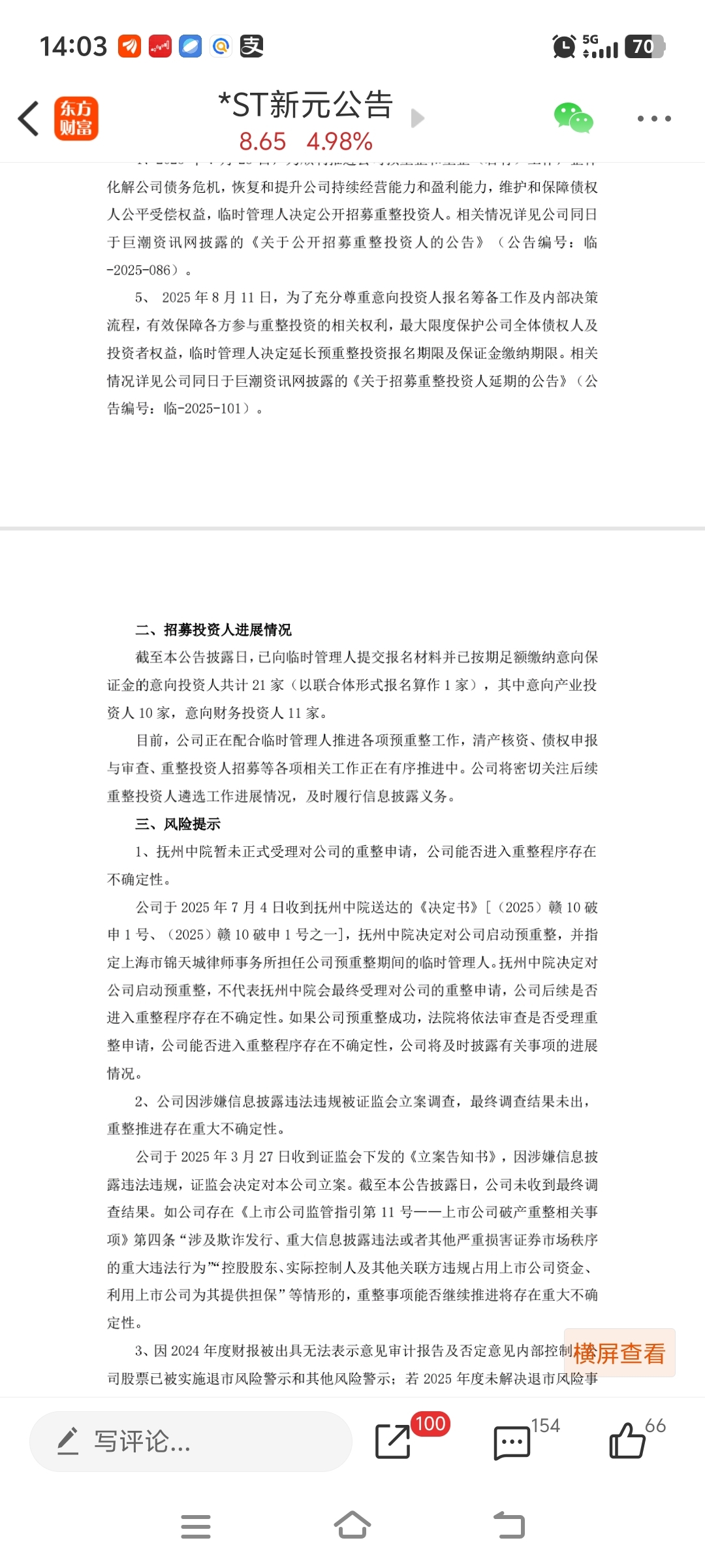 去年ST新元有立案在身,重整具有重大不确定性,仍然有21家报名!赛为这次是主力利用散户恐慌心理洗盘!