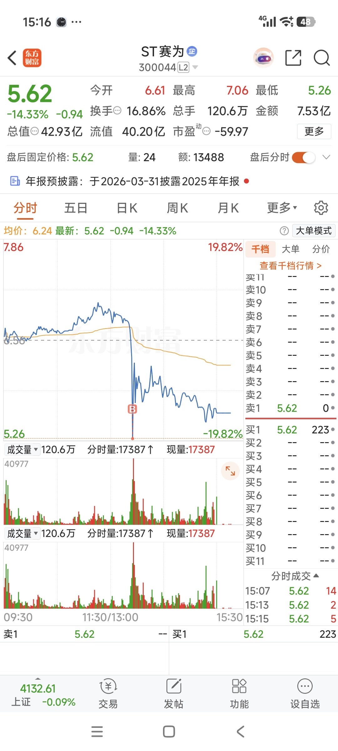 $ST赛为(SZ300044)$ 惊魂一跳,霸气侧漏
