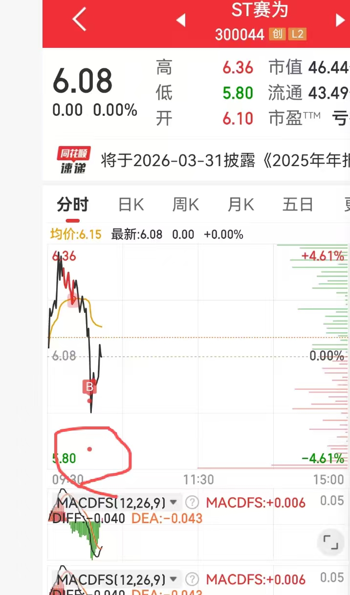 $ST赛为(SZ300044)$ 分时图都不显示的位置。被我买到了,怕啥呢,怕卡脖子吗?