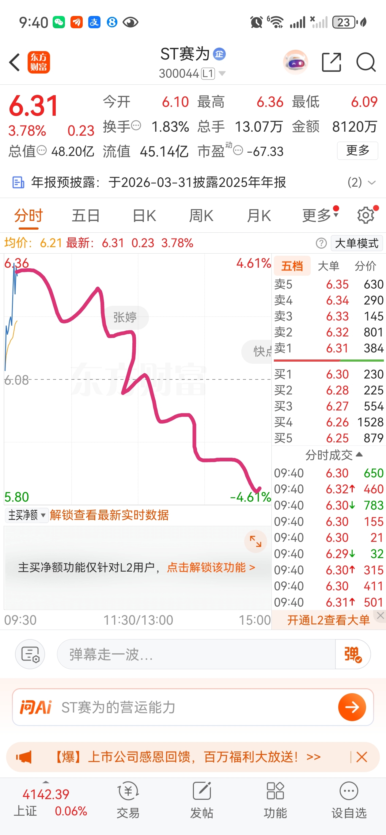$ST赛为(SZ300044)$ 有种从天而降的掌法