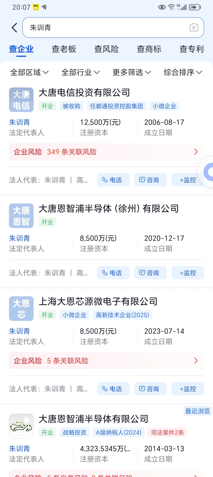 深圳大恩芯储,朱训青法人代表相关企业如下