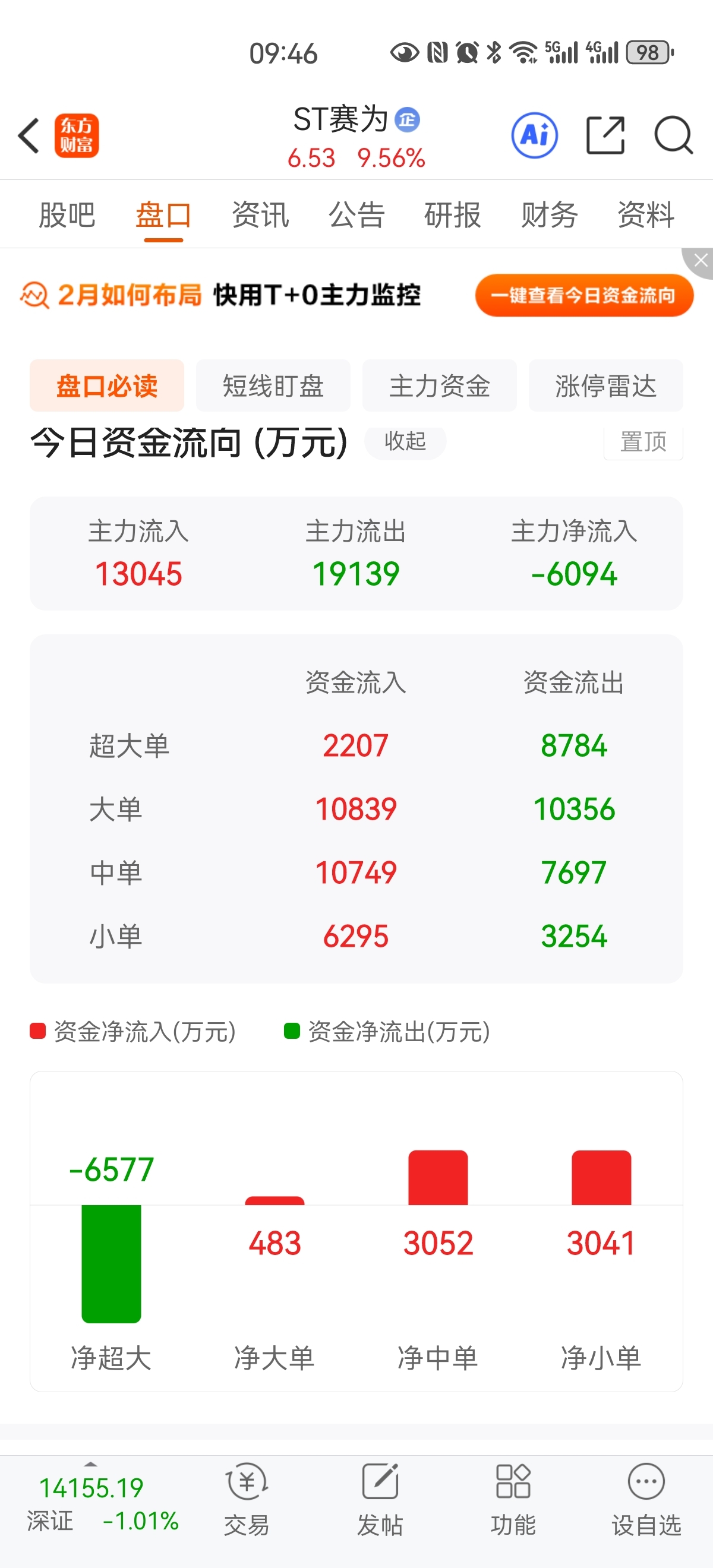 $ST赛为(SZ300044)$ 十五分钟,超大单跑路近七千万,这哪是出货啊。这是逃命啊,散户快倾家荡产进来接盘。