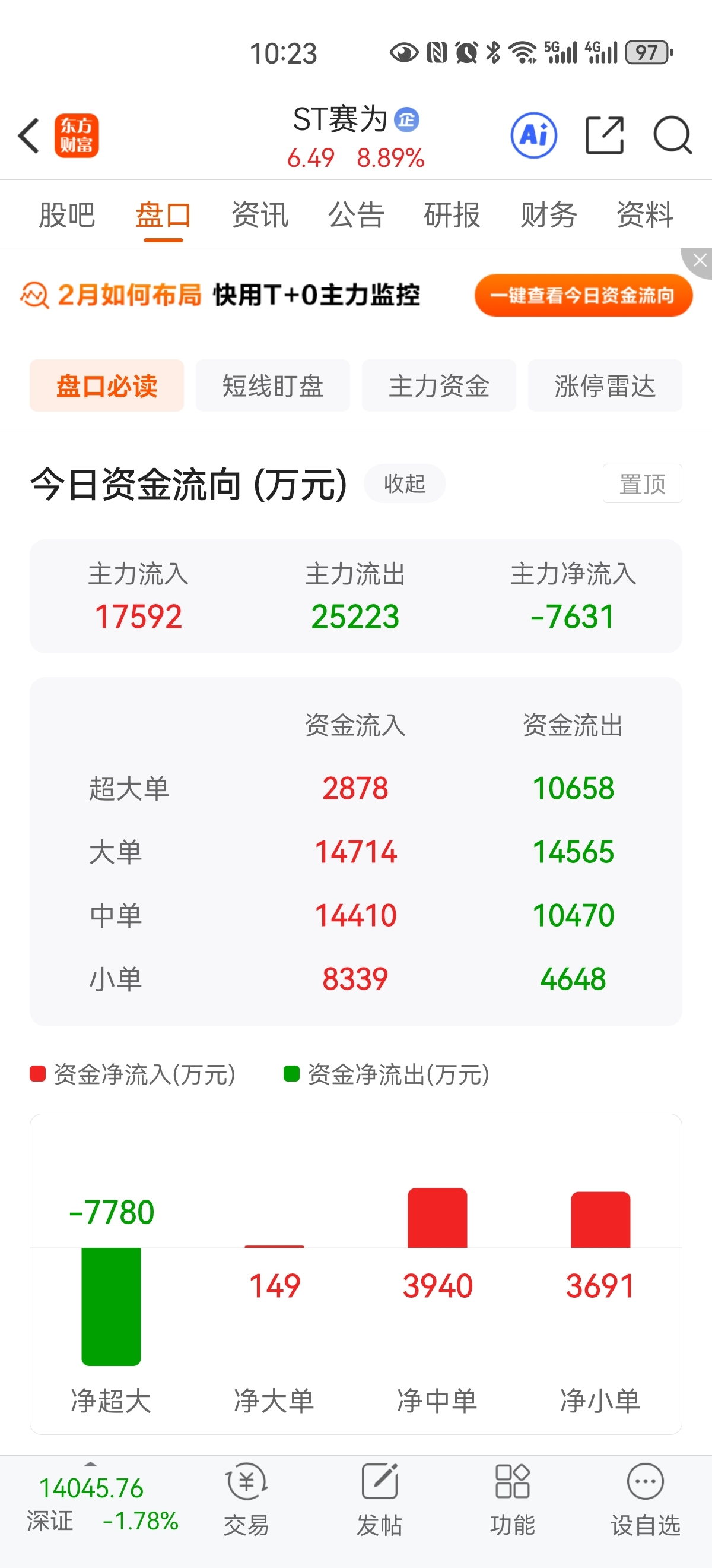 $ST赛为(SZ300044)$ 这主力哪是出货啊,这明明是在逃命啊。