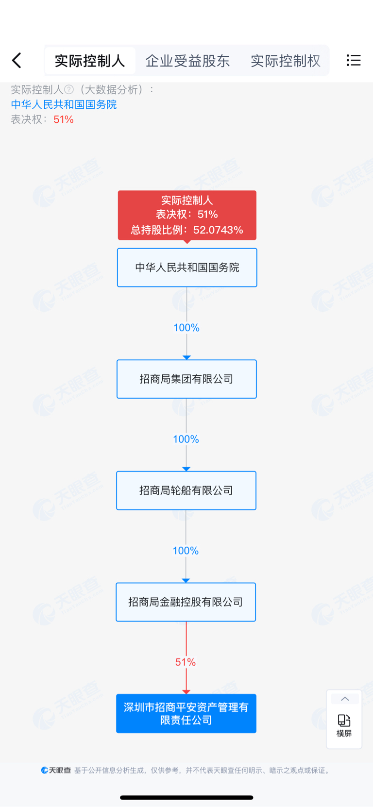 第一大股东:(持股51%),招商局金融控股有限公司—(100%控股、实控人)国务院。