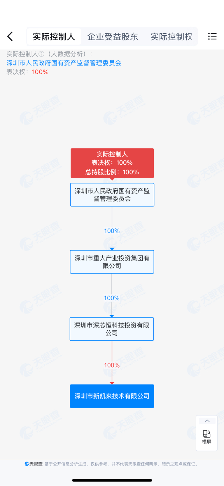 (这里还有另外一个股权关系:深圳市人民政府国有资产监督管理委员,又100%控股“深圳市新凯来技术有限公司”)。